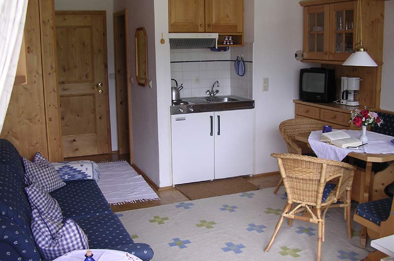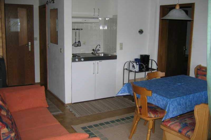 Wir bieten Ihnen Wohnungen für 2 oder bis zu 4 Personen an. Natürlich gehört auch zu jedem Appartement ein Balkon. Ausgestattet sind die Wohnungen mit Dusche und WC, SAT-TV und einer Kochnische, in der Sie Kühlschrank, Kaffeemaschine, Wasserkocher, Toaster, Koch- und Tafelgeschirr vorfinden. Auf Anfrage kann zu bestimmten Zeiten auch eines der beiden Dachgeschoß-Appartements gebucht werden, die über jeweils zwei Schlafzimmer verfügen. WLAN ist ebenso inklusive wie die Nutzung von Schwimmbad und Fitnessraum, die Aufenthaltsbereiche sowie der Parkplatz vor dem Haus.